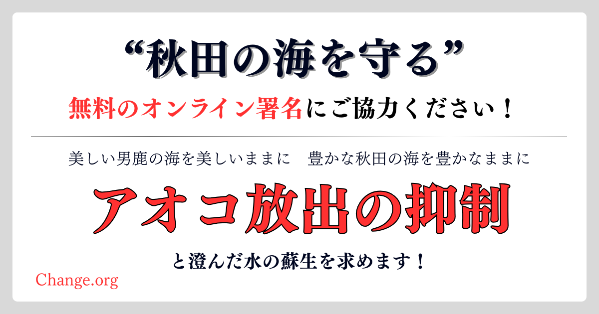 今、「豊かな秋田の海」「美しい男鹿の海」が危険にさらされています。